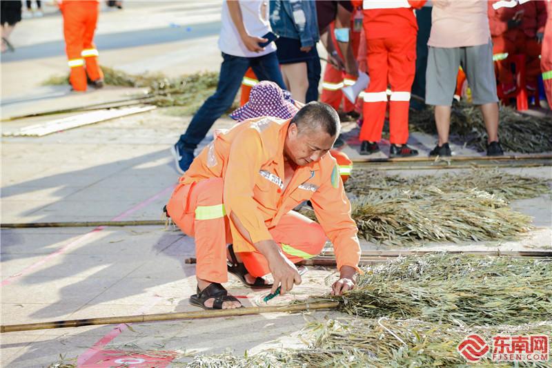 捆扎扫把技能竞赛(主办方供图) 同场竞技 展示环卫队伍业务水平和风采 俗话说,三百六十行,行行出状元。挑选枝条,整齐码放,捆、扎、整、踩,环卫工人利落地造出结实耐用又趁手的扫把。 据悉,为了强健环卫工人的身体素质,缓解工作压力,增强团队精神,增进学习交流,提高作业水平和工作效率,活动现场开设了“匠人匠心”环卫职工技能比赛区、“同心同德”团建区。 除了捆扎扫把,“匠人匠心”环卫职工技能比赛区设置了捡烟头、拆装轮胎、清洁楼设备操作、道路清扫等项目,模拟常见场景,全面考验环卫工人的业务技能。而“同心同德”团建区则为环卫工人准备了拔河、清新风火轮、穿针引线等比赛,不仅锻炼了大家动手动脑的能力,还展现了大家团结协作、努力拼搏的精神。 此外,活动现场还开展了“清新集美”垃圾分类主题宣传,并为环卫工人准备了投篮、吹乒乓球、抛绣球、愤怒的小鸟、夹弹珠等垃圾分类趣味小游戏,现场气氛活跃。 |