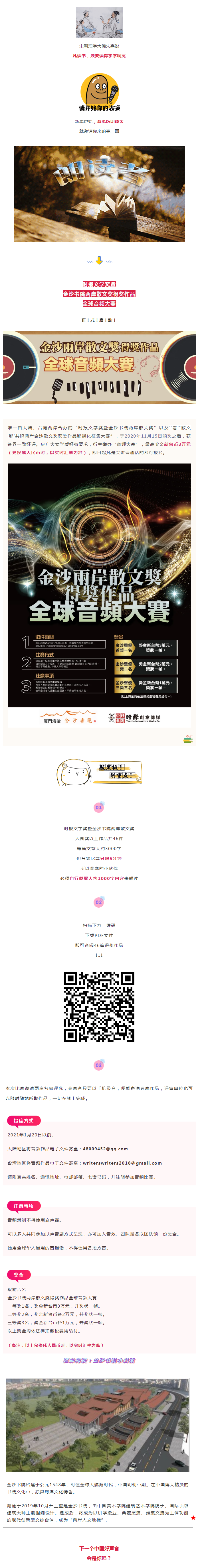 金沙两岸散文奖得奖作品全球音频大赛启动!快来!