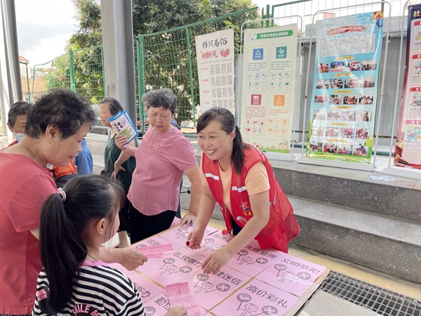 图二:东宅村新时代文明实践站开展宣传活动,志愿者现场发放宣传单。(东宅村新时代文明实践站 供图) 户外宣传 “志愿红”助力新风进万家 “志愿红”助力移风易俗,扩大文明触角。连日来,实践站积极组织志愿者开展移风易俗专题户外宣传,以流动宣传的方式让移风易俗观念深入社区,深入民心。 滨水、西滨等社区新时代文明实践站组织志愿者开展移风易俗主题宣传活动,通过分发宣传单、知识普及、互动问答等方式,走街串巷,向居民深入宣传移风易俗相关知识,呼吁广大居民从自身做起,以实际行动破旧立新,抵制不良风俗,弘扬时代新风,共同建设文明家园。(通讯员 吴林瑞 来源:集美报) |