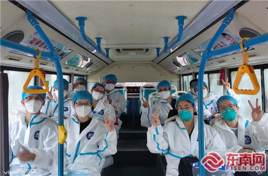 21日上午,医务人员乘车前往同安。姜汉祥 摄