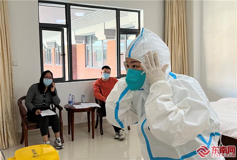 参赛医务人员在穿防护服。东南网记者 李霖 摄