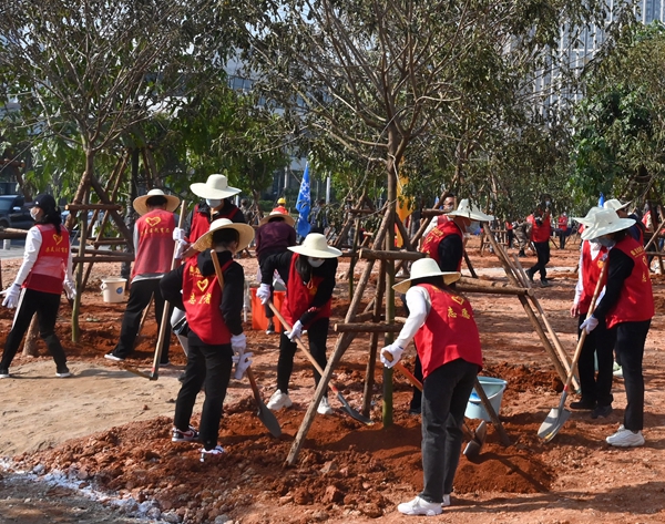 图二:集美青年友好林植树活动现场。(吴觅亮 摄) 来自嘉义的集美台湾青年双创基地台青陈明佑说,我今年刚来厦门,第一次参加植树活动,集美建设青年发展友好型城区非常好,能够吸引和鼓励更多台青来集发展。 为青年成长提供更多机遇、创造更好条件,今年以来,集美区挂牌启用家庭教育指导中心,启动建设环杏林湾青年运动场地、青年公寓、青年食堂,举办首届“青年杯”动漫作品大赛、“TOP.Y”青年人才高校行和专场招聘、新职青年融入集美等活动。 接下来,集美区将出台更具优势的青年创业就业扶持政策,不断完善青年学习生活的配套措施,打造让青年人引得进、留得住、干得好的“全生命周期”生态环境,为集美区更高水平建设“两高两化”示范区凝聚更加强大的青春智慧和青春力量。 又讯 (记者 林志杰)3月11日上午,区领导洪清岩、徐香平、丁加生、苏群明、陈来福、李梅以及相关部门领导、干部代表,一同来到东辉村新324国道旁开展义务植树,为生态集美建设增绿添彩。 植树现场,大家纷纷拿起工具,挥锹铲土、扶苗浇水,相互协作,一阵忙碌过后,400多株特色树种被栽下。据介绍,本次植树栽植面积6700多平方米,包含了火焰木、富贵榕、秋枫等树种。(记者 吴觅亮 来源:集美报) |