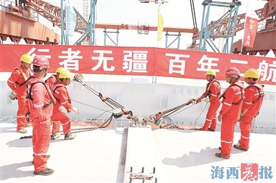翔安大桥 主桥合龙 主线双向8车道,设计时速80公里,预计明年春节前建成通车