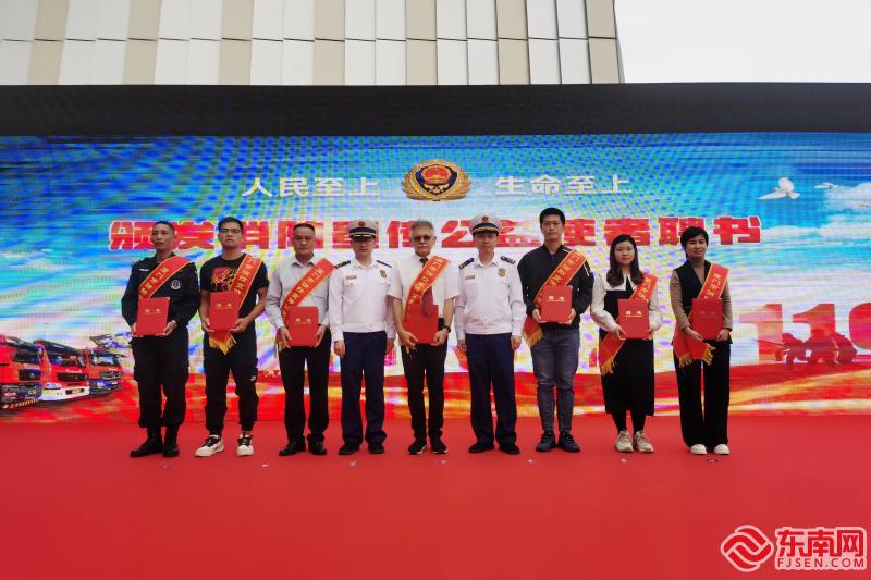 7位消防宣传公益使者上台接受聘书(东南网记者 刘玮 摄)