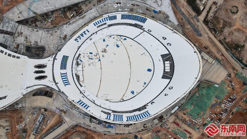 厦门新体育中心凤凰体育馆金属屋面基本完工。(中建二局供图)