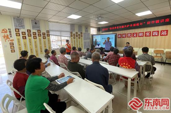 为老人们开展防诈骗讲座(后亭村新时代文明实践站供图) 打造“为老服务”新场景 后亭村新时代文明实践站还与后亭村幸福院融合,以实践站为基地开展老年人医疗知识宣传、名医下乡义诊等活动十余次,并时常组织志愿者上门为年迈老人打扫卫生、送饭,陪老人聊天,送去关爱与温暖。 今年年初,实践站为全村免费提供紧缺的布洛芬、连花清瘟等药物,用心守护每一位村民的健康。同时,后亭村文明实践站还成立“急需药物采购抢购代购团队”,为缺乏上网经验的年长者提供便利服务,将志愿精神的文明持续扎根落地。 另外,后亭村两委在走访慰问老年人时发现不少村民市民卡(医保卡、社保卡)无法使用后,及时联系党建共建单位泉州银行厦门分行入驻文明实践站开展服务,两天内解决了近50个村民的迫切需求。 而每到传统节日时,实践站便成了包饺子、汤圆、粽子等各类特色美食的场地。这里也是老年人游乐的空间,实践站时常组织老年人参与各类游戏,唱红歌等活动,丰富老年人的晚年生活。 值得一提的是,实践站还成为后亭村老年人协会崭新的议事厅,他们让交流从传统的宗祠搬到了文明实践站,不断为村庄的大小事情谋划,推进村庄建设发展。 |
