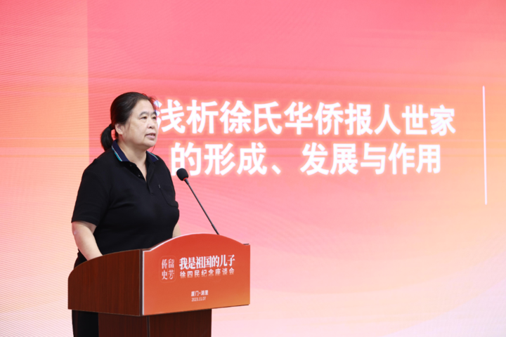 闽侨智库闽江学院研究中心研究员、福建省华侨历史学会理事、高级记者刘琳在《浅析徐氏华侨报人世家的形成、发展与作用》的主旨发言中梳理了徐四民报人世家的历史,并对其所体现的爱国主义精神进行了精炼总结,“徐氏华侨报人世家历史,也是百余年海内外先进中国人执着探索民族救亡图存、救国救民道路并最终选择跟着中国共产党为民族复兴奋斗的历史,展现了中国人民在民族复兴的道路上一次次抗争、一次次求索,自强不息的顽强意志。”