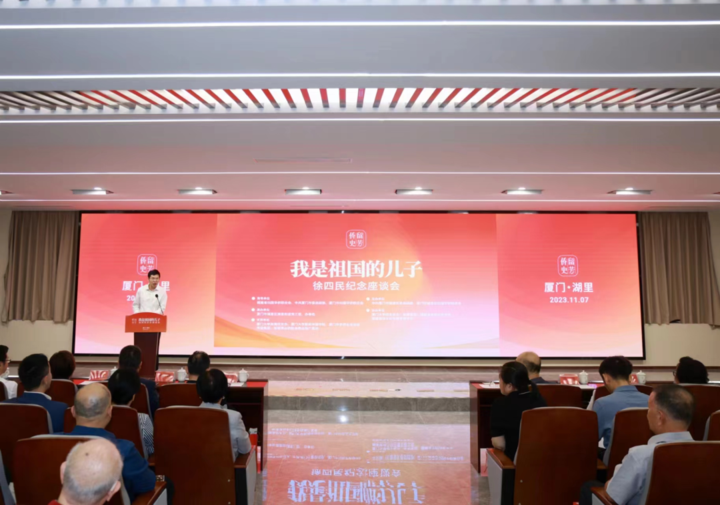 聆听华侨故事 传承华侨精神 为纪念缅怀 徐四民先生光辉灿烂的一生 以“我是祖国的儿子”为主题的 徐四民纪念座谈会 在厦门湖里区闽台文化交流馆 隆重举行