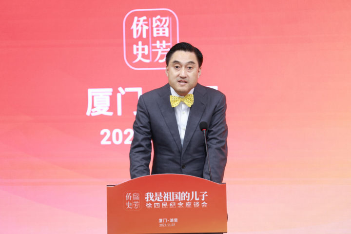 厦门市侨资企业协会创会会长、英蓝集团董事长于志强随后作了以《向“徐四民精神”致敬》为主旨的发言,他在发言中说道,“我们今天的时代仍需要‘徐四民’,需要‘徐四民精神’。厦门是陈嘉庚、徐四民的故乡,也是我们厦门市侨资企业协会永远会长庄炎林的故乡,华侨情怀、华侨精神,铸就了厦门城市灵魂,我们要向华侨先辈学习致敬。”