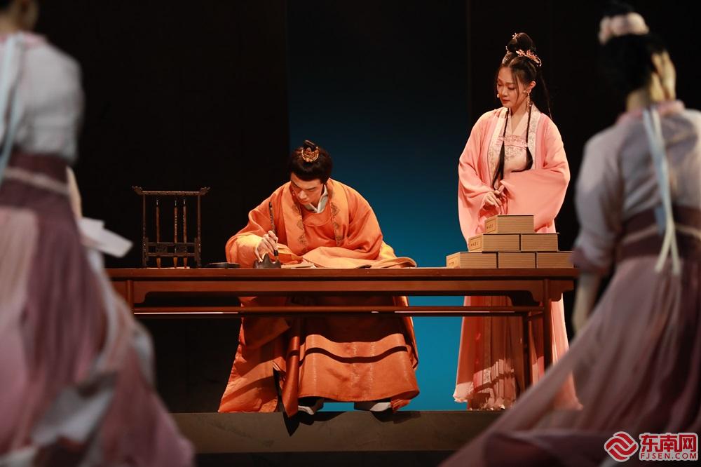 音乐剧《南孔》(闽南大戏院供图) 东南网11月23日讯(记者 柳绿)11月21日与22日晚,作为第二届全国优秀音乐剧展演中唯一一部入选的新国风题材音乐剧,由中共衢州市委宣传部、浙江演艺集团(浙江歌舞剧院有限公司)创演的音乐剧《南孔》在厦门闽南大戏院剧场震撼上演。 据了解,音乐剧《南孔》以孔子第53世嫡孙孔洙为主线,讲述了他为实现心中的“礼”,在理想和故乡中选择的故事。全剧分为上下两场,上半场为“渡”,讲述了孔洙生根江南,年过半百却依旧怀有经国济世的理想,面对时代风云变迁,在跨越时空与先祖孔端友的对话中做出抉择;下半场“礼”则讲述孔洙为了心中的天下和家庙的守护,重走南渡之路,将“衍圣公”爵位让于曲阜宗弟后,回到衢州衍圣弘道的故事。 演出现场,跌宕起伏、感人肺腑的故事情节;大气磅礴、唯美灵动的舞美设计,张弛有度、巧妙灵动的舞台调度;字正腔圆的念白,声情并茂、动人心弦的演唱——浙歌演员的精彩演绎,使得满台生辉,高潮迭起。演出结束时,现场掌声经久不息。 |