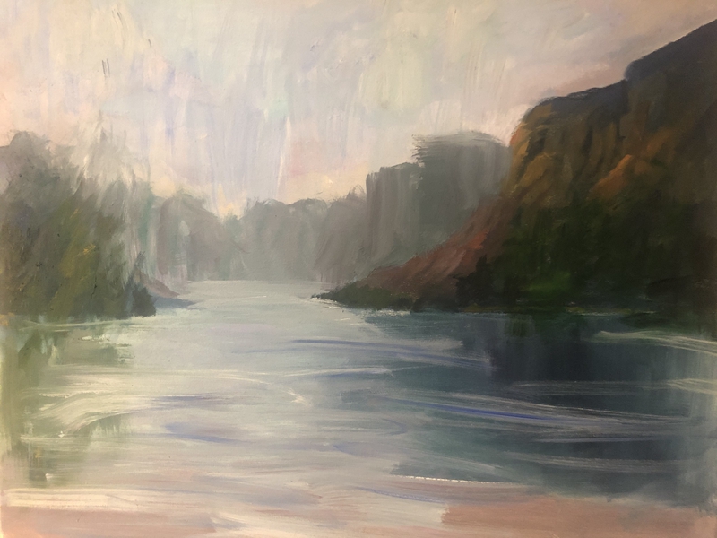 创作思路:回国时,有幸参加了武夷山旅游,乘坐九曲竹伐,惊叹武夷山水的秀美,九曲溪的波澜壮阔。因此有感而作。