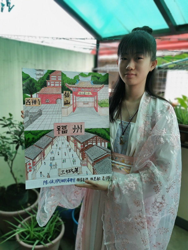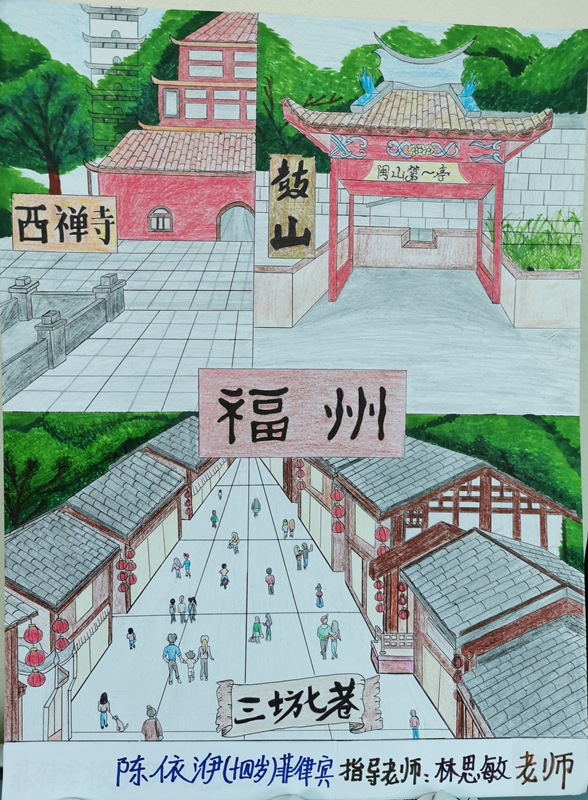 创作思路:通过对福州城市面貌的了解,我在网上查找到了关于福州出名的旅游胜地,这些地方不仅风景优美,更是福州的标志。他们是福州历史变化最好的见证,我想如果我能到福州,一定要看看这些承载着福州记忆的地方,所以这也是我将它画下来的原因。