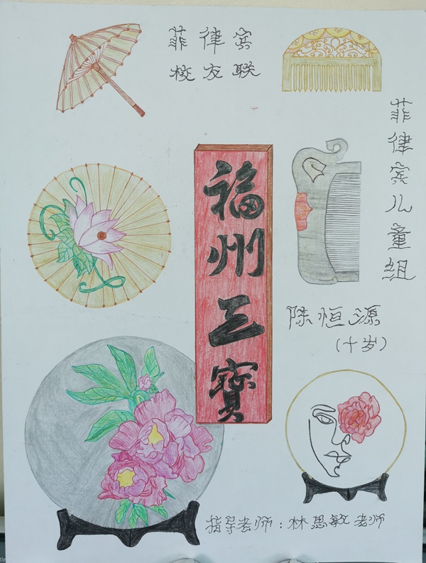 创作思路:经过“亲情中华网上听你讲故事”让我对祖籍国有了更深刻的了解,我特别喜欢福州的三宝,这是个永垂不朽的传统文化。