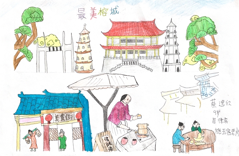 创作思路:福州有很多非常有名的旅游景点,都是历史文化,美食街有着各种各样的小吃。我希望很快可以去看一看最美的榕城。