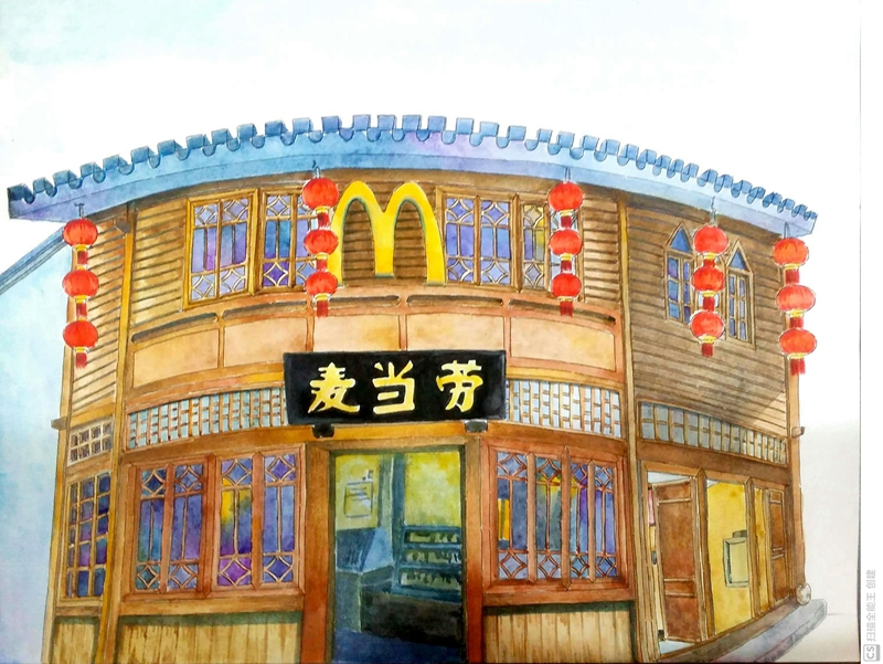 创作思路:世界各地有着许多具有当地特色的麦当劳,但福州的麦当劳令我印象深刻。古色古香的建筑,简直颠覆了我以往看到的麦当劳。