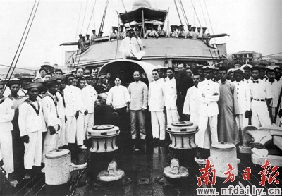孙中山在永丰舰上。