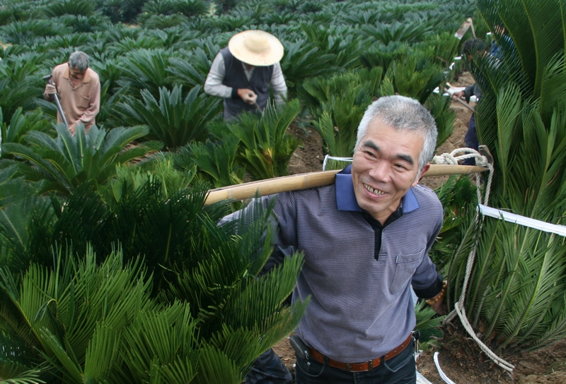 ![]() 2011年11月13日,福州日报“党报记者乡村行”走进闽侯县青口镇梅岭村“铁树之乡”。图为记者拍摄村民正在挑运被购买的铁树。 |