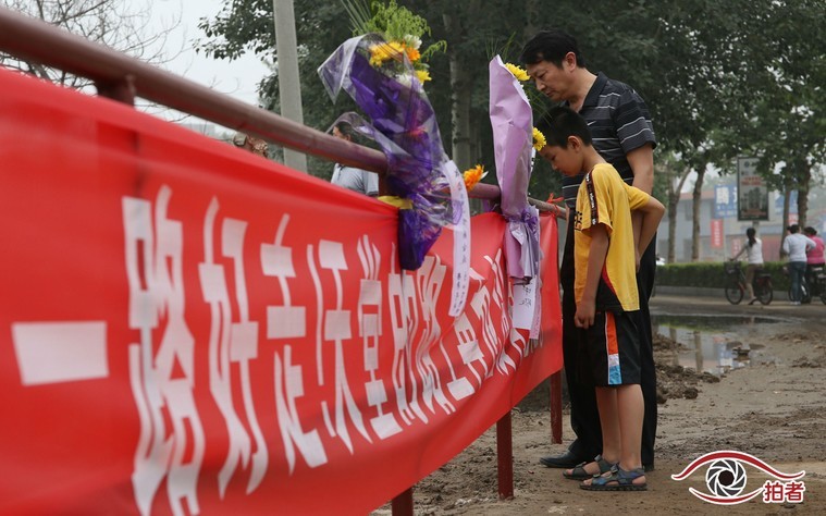 6月8日,定州高考女孩跌入水渠身亡事发地点,民众自发举行悼念活动。新京报记者 王叔坤 摄