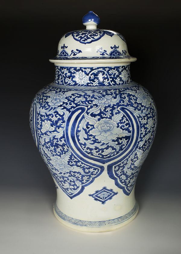 名称:青花花卉纹大将军盖罐 年代:清·康熙 来源:平潭“碗礁一号”沉船出水 收藏:福州市博物馆 简介:将军罐因其宝珠顶盖形似将军盔帽,故而得名。它的造型始见于明嘉靖、万历年间,是佛教僧侣们盛敛骨灰的器物。到了清顺治时期基本定型。康熙朝是将军罐最为流行的时期,这时的造型,将浑圆的罐体展肩提腹,拉长颈部,彰显其挺拔向上,气魄宏伟的特征,因此不论是官窑还是民窑都大量地烧造。 |