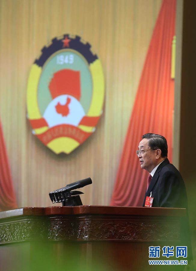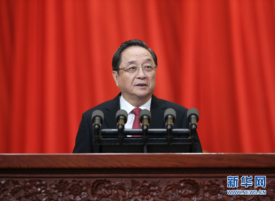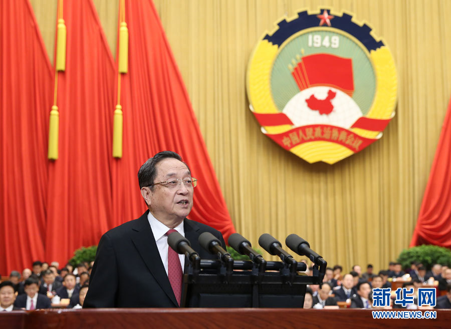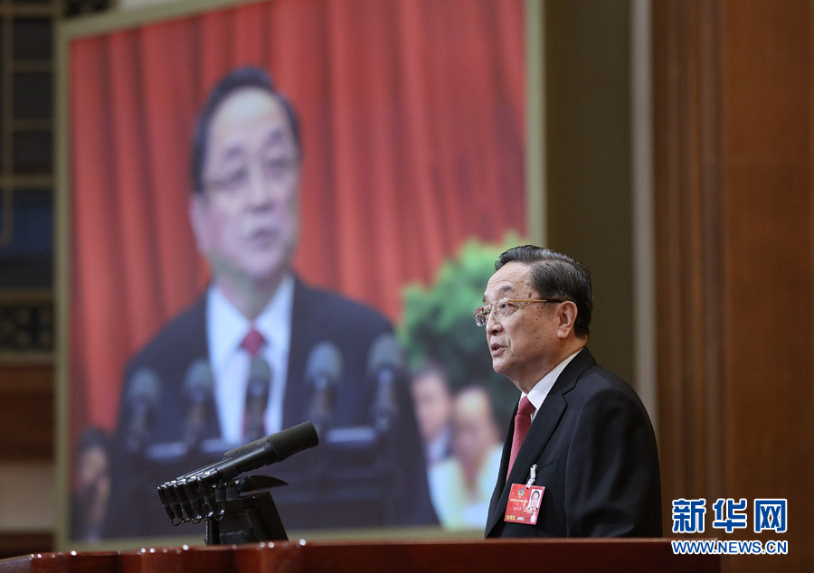 3月3日,中国人民政治协商会议第十二届全国委员会第四次会议在北京人民大会堂开幕。这是俞正声代表政协第十二届全国委员会常务委员会作工作报告。新华社记者 庞兴雷 摄