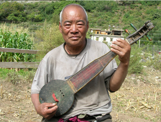三弦舞起源于芒康县曲孜卡乡达许村境内,据考证距今己有四、五百年的悠久历史,至今除该乡境内广为流传外,在周边地区也较为知名。三弦舞是以三弦琴为伴奏乐器,传说琴头是龙的头,琴身是龙的脊梁,琴弦是龙的筋;而现今的三弦琴是以纯木制成。三弦舞的表演是以男女聚集翩翩歌舞,歌词动听、节奏悠扬、时快时慢。音乐以淳朴明亮、唱腔奔放流畅为特点。不受人数、场地等限制,男女齐唱,边唱边跳,一般都地在悠扬缓和的乐曲当中开始,流畅欢快的中场表现,升腾热烈中结束,均以避灾祛祸、庆祝丰收、祝愿吉祥为主要内容。 |
