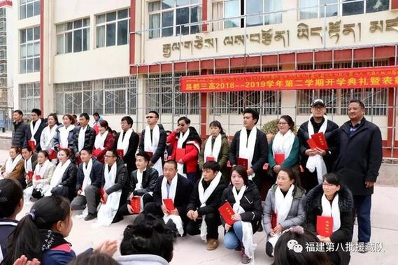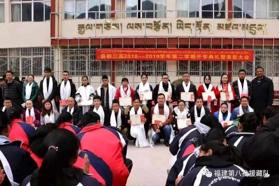 日前,昌都市第三高级中学举行2019春季开学典礼暨表彰大会。 昌都三高校长杨中元在总结学校工作时指出,近三年来,昌都三高全体师生奋力拼搏、锐意进取,在学校建设、教学教研、思政教育、高考备考等方面取得了可喜成绩,尤其是2018年高考上线率达到81.33%,实现了昌都三高高考成绩的突破,得到了社会各界的充分肯定。 会议对上一学期涌现出来的“教学先进”“先进备课组长”“优秀班主任”等进行表彰,福建教育援藏队成为一个非常耀眼的群体:来自福建教育援藏队的20多名老师,因支教工作突出、教学成绩显著而被授予各类奖项。