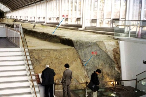 图10 古地震研究的探槽。1999年台湾集集7.6级地震后,在发生地震的车笼埔断层上开挖了探槽,以研究它的古地震历史。图片来自KarlMueller。
