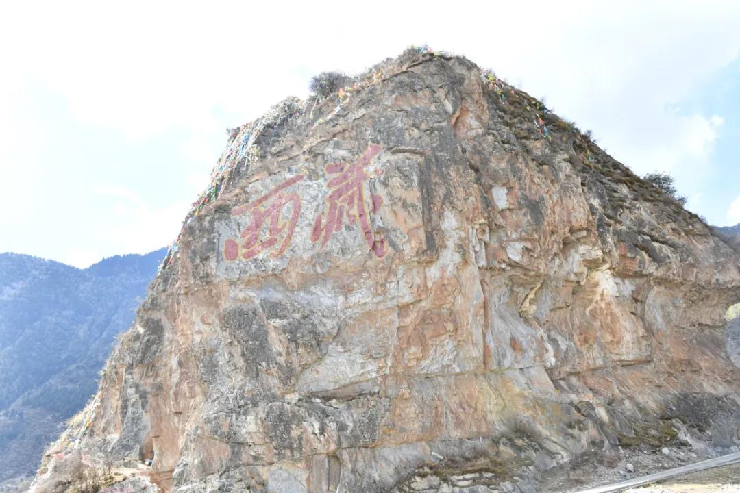 不远处,是十八军红色渡江遗址游客中心,内设“岗托——西藏第一面五星红旗升起的地方”“昌都战役”“川藏公路筑路”“西藏和平解放”等板块,不仅有文字介绍,还有许多珍贵的历史资料照片。 游客中心内,摆放着十八军仿制军装。记者兴致勃勃地穿好衣服、裤子,系上腰带,戴上军帽,在纪念十八军和平解放西藏雕像前留影,体验了一把当年十八军战士的飒爽。 在十八军渡江口附近,崖壁上的“西藏”两个大字赫然入目,这是当地又一大网红打卡点。记者求证得知,这是2003年县旅发局派人镌刻的,临摹毛泽东给西藏日报刊头题字中的“西藏”二字,以作为进藏旅游第一站的标志,吸引游客。