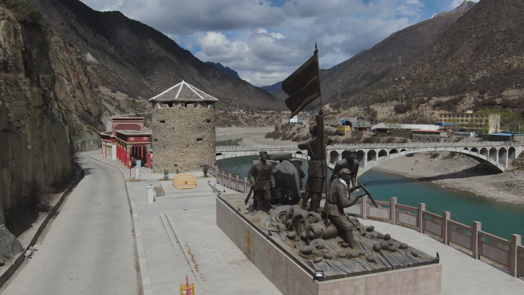 进村后,可见三座碉堡。其中,两座位于金沙江畔,据传是旧西藏噶厦政府修筑的,用于抵御解放军入藏,十八军渡江后在碉堡上升起五星红旗;另一座位于山坡上,据传是解放后修筑的,用于守护1956年金沙江上建起的吊桥。 碉堡旁,有一大网红打卡点——纪念十八军和平解放西藏雕像。战士们有的高举军旗,有的吹响号角,有的手握长枪,有的挥锄修路,还有藏族群众用牦牛帮忙运送物资……当年十八军战士在岗托村打响昌都战役第一枪的盛况,浮现眼前。