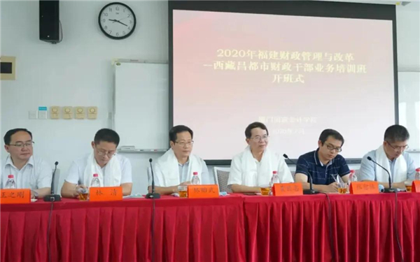 2020年福建财政管理与改革 西藏昌都市财政干部业务培训班顺利开班 7月6日,2020年福建财政管理与改革——西藏昌都市财政干部业务培训班开班式在学院顺利举行。厦门国家会计学院黄世忠院长、福建省财政厅林贻武副厅长、林清处长、张翼飞主任、西藏昌都市财政局张愈结副局长、王之刚副局长出席开班式,开班式由福建省财政厅林清处长主持。