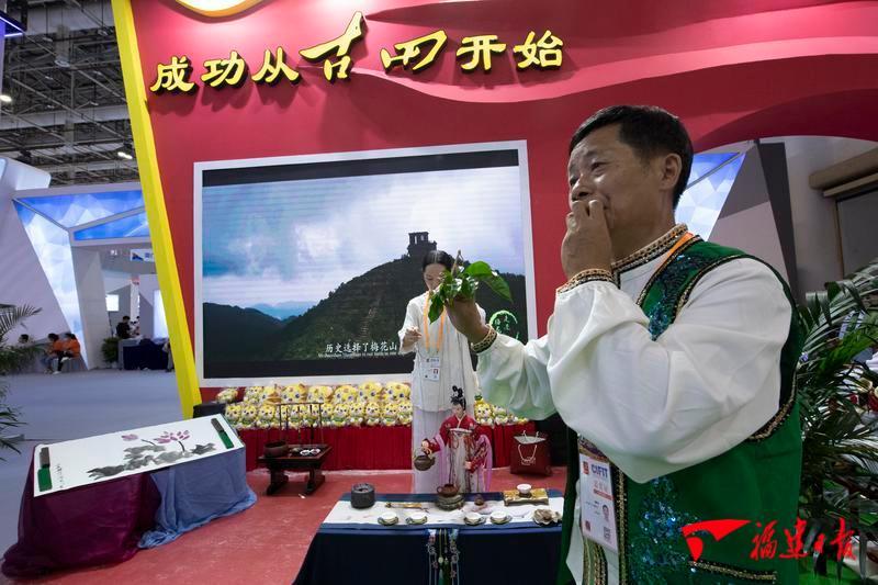 上杭县古田展区,传统的树叶吹奏技艺和客家提线木偶表演亮相。(福建日报记者 王毅 摄影报道)