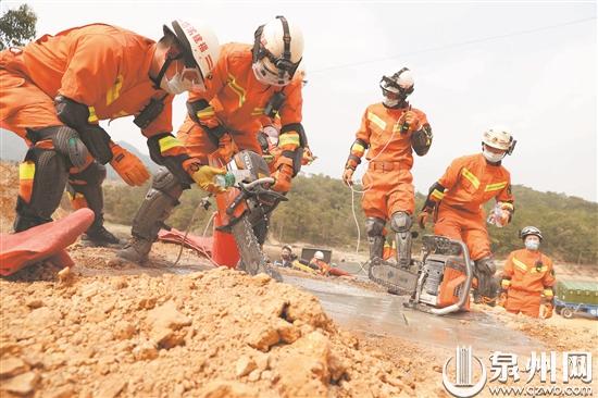 演练贴近实战,全面检验队伍综合救援能力。 昨日,泉州市消防救援支队在洛江区马甲镇祈山村开展“平安刺桐·2021”综合救援拉动演练。 本次演练情景设定为泉州洛江区发生里氏7.0级地震,并伴有次生洪涝灾害,洛江区多处村庄倒塌损毁严重,大量人员被困,部分通信公网中断,进入震中道路交通部分损坏。 昨日凌晨4时许,接到灾情信息后,泉州市消防救援支队立即启动地震灾害事故应急救援预案,支队全勤指挥部和地震、山岳、水域救援专业队以及社会救援联动单位,第一时间响应出动,分别从全市不同地方抵达现场。 支队先期派出无人机对震中进行高空航拍,侦察受灾情况,形成灾区3D立体地图,并向指挥部反馈灾情。 各演练队伍到场后,按照“分区作战、分段作业,即时到场、梯次展开”的模式,依次完成峡谷救援、低洼地带人员转运、孤岛救援、建筑坍塌救援、夜间丛林搜寻、道路清障、极端路况下人员和物资投放等实战科目,以及现场通信、照明、饮食、医疗等后勤保障科目,全面检验了队伍快速前突、协同作战、战斗力投送、预案执行、综合救援等能力。 在水域救援科目中,模拟惠女水库内有一名村民被困在水库中央。救援队伍到场后,首先使用手划橡皮艇方式救援,橡皮艇穿过水中的重重障碍,最终将遇险的村民救起,并顺利送回安全区域。而在山岳救援科目中,救援人员在峡谷中,采用绳索等装备,成功将被困于峡谷的村民救起。在坍塌救援科目中,救援人员采用切割机、电锯等工具,成功锯开了20多厘米厚的水泥板,随后,救援人员进入坍塌的“房屋”中,将被困人员成功救起。 据了解,本次演练共调集支队全勤指挥部、作战训练科、战勤保障科、组织教育科、新闻宣传科,特勤、晋江、洛江、台商、德化等大队,泉州市社会救援联勤中心、迅捷水域救援队、蓝天救援队、阳光救援队、荒野召唤救援队、兴晖救援队、远通通信救援队、真情在线保障队等相关社会联动单位共计300余人。 泉州市消防救援支队相关负责人介绍,本次演练的科目设定,是基于以往救援过程中遇到的困难,贴近实战,目的在于通过演练对标应急救援主力军和国家队职能定位,聚焦“全灾种、大应急”任务需要,坚持练技能、练指挥、练协同、练保障、练作风,检验社会救援队伍在突发叠加灾害情况下的投送及协同作战能力,不断提升全市消防救援队伍综合应急救援水平。 (记者 傅恒 庄丽祥通讯员 黄阿兰 许振塔 文/图)