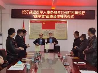 2月14日,长汀县退役军人事务局与汀州红村镇银行举行“拥军贷”战略合作仪式,此次合作协议的签署揭开了长汀县拥军优属的合作篇章。
