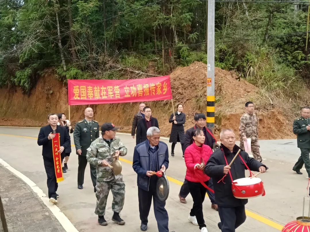 龙岩市 2月18日,伴随着热闹的锣鼓声,龙岩市武平县人武部、县退役军人事务局、武东镇党委等领导一行为立功受奖的现役军人家庭送立功喜报和慰问金。
