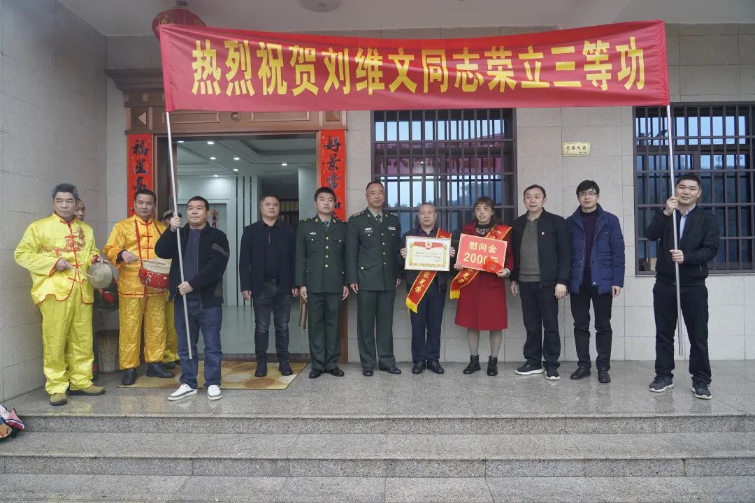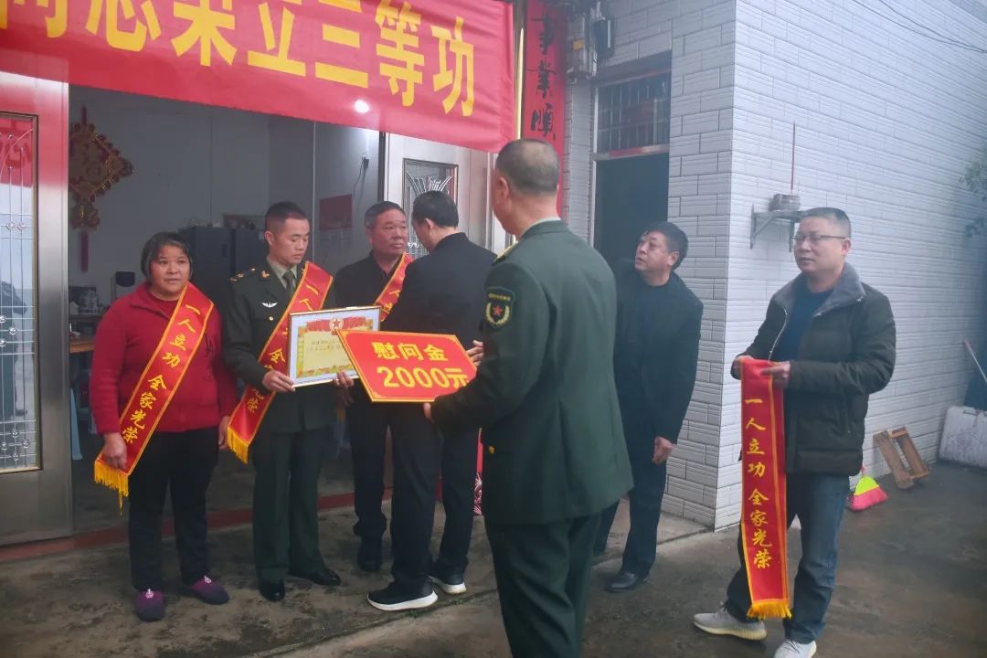 慰问组一行先后走进田背村钟镁祥、钩坑村刘维文家中,将“三等功”喜报及慰问金送到现役军人或家属手中。慰问组对取得荣誉立功受奖的军人及军属表示祝贺,感谢他们为部队、为祖国培养了优秀的军事人才,也为地方赢得了荣光。