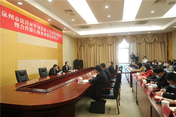 银行信贷专属产品、ETC省内高速折上折、加油满减活动、超市购物满减、机场贵宾休息室服务……3月1日下午,泉州市优待证申领发放工作责任状签订暨合作银行服务承诺发布仪式上,一大波专属金融福利正式面向退役军人及其他优抚对象发布。 “今天的仪式标志着我市优待证申领制发工作全面启动。”泉州市退役军人事务局局长唐良元要求全市退役军人事务系统高度重视这项今年重中之重的工作,更加主动抓好落实。他强调,优待证申领发放工作是一项光荣的政治任务,是一项严肃的依法行政任务,也是彰显尊崇退役军人的具体表现。