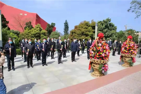 受疫情影响,今年清明期间,龙岩市无法派人前往广西壮族自治区兴安县、灌阳县等地祭奠湘江战役烈士,龙岩市退役军人事务局委托桂林市退役军人事务局到兴安县红军长征突破湘江烈士纪念碑园等地现场祭扫闽西籍烈士。 3月28日,桂林市退役军人事务局组织局领导和机关干部、相关县领导、部分中小学师生到湘江战役烈士纪念碑、烈士纪念园等地祭奠闽西籍英烈,并敬献花篮,表达家乡人民对闽西籍烈士的深切缅怀之情。