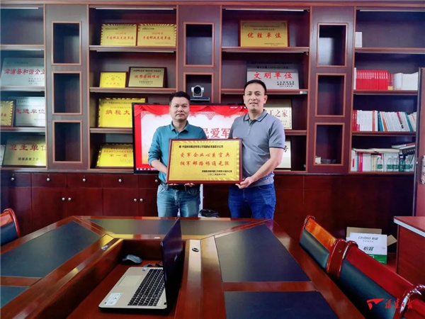 近日,漳浦县退役军人事务局干部、驻浦某部队军官代表一行人来到漳浦邮政分公司,为他们送上“爱军企业心系官兵,拥军邮路畅通无阻”牌匾,驻军代表也为县退役军人事务局送上“全心全意解难题,真情服务为官兵”锦旗,以此表达感谢。