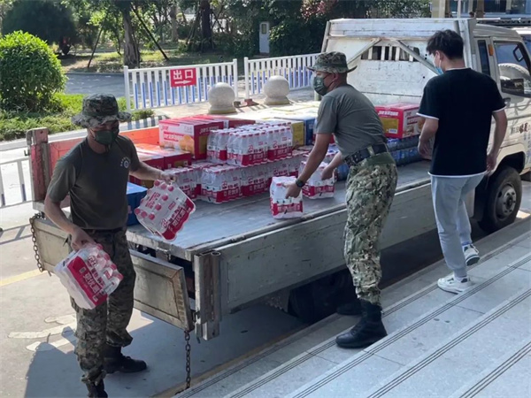 平潭蓝天基地作为实验区的一家军创企业,得知奋战在抗“疫”一线的医护人员生活物资短缺后,主动与红十字会联系,向平潭协和医院以及隔离点的抗“疫”人员捐赠水、饮料、方便面、牛奶、水果等生活物资,为默默奉献的一线医务工作者和志愿者送去一丝清凉和关怀。温暖之举,诠释了退役老兵的铮铮誓言,凝聚起同心战“疫”的强大合力。