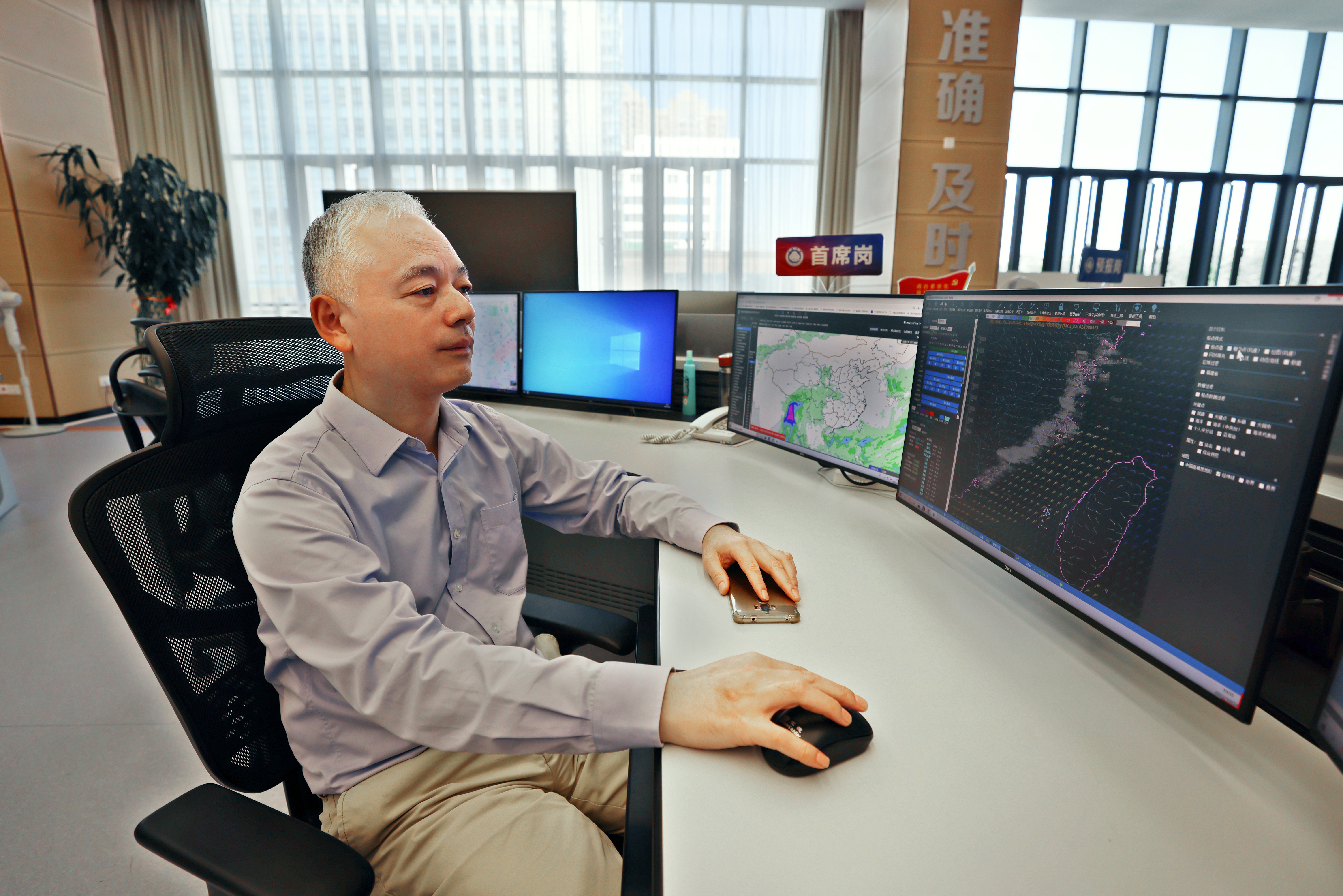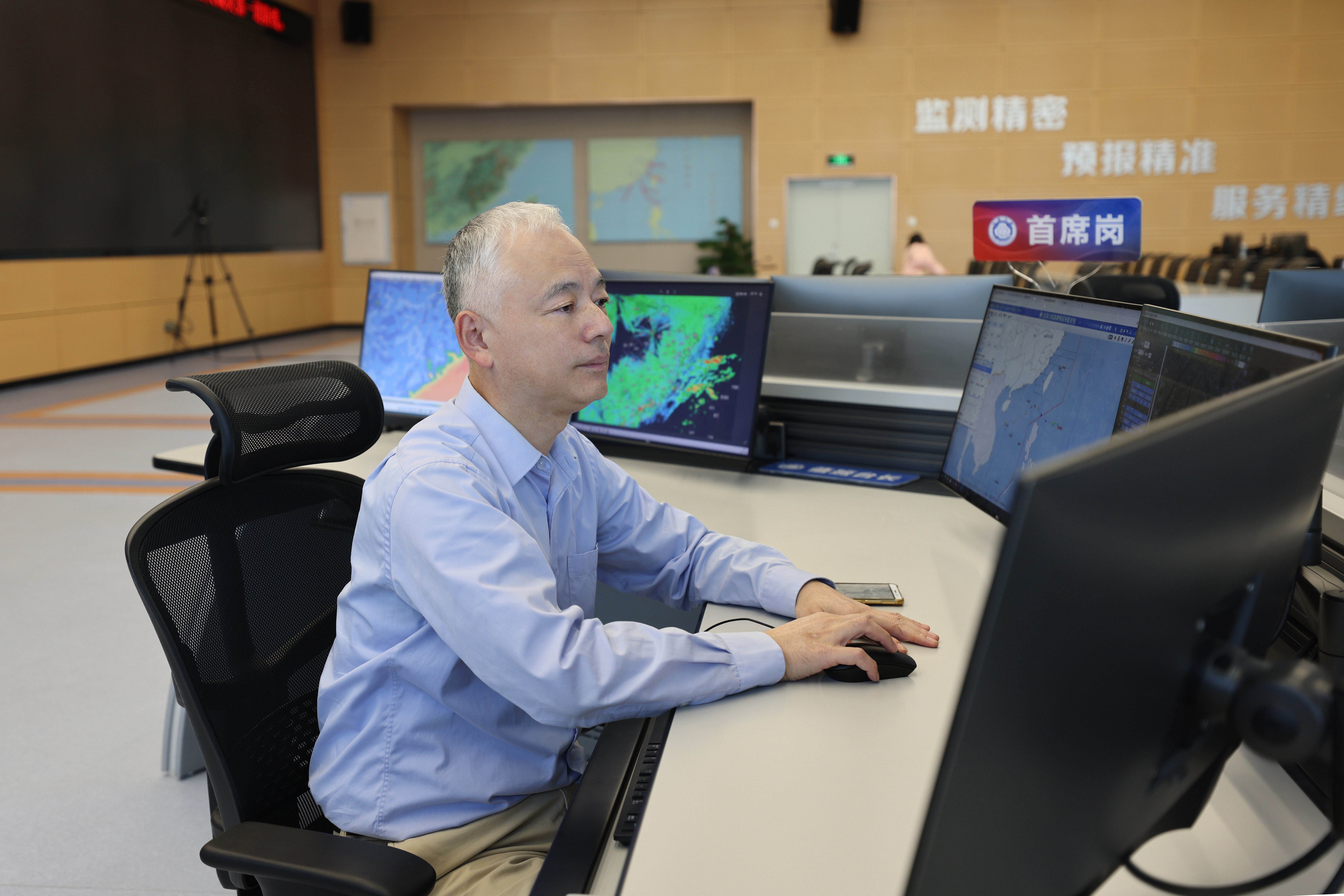 虽然只有57岁,但福建省气象台副台长、正高级工程师刘铭已是满头银丝,在预报员中格外显眼。“刘台天天都在预报大厅忙碌,‘存在感’特别强,”身边的同事们笑着说,“他的白头发就是气象台的一道风景线。” 自1987年从山东海洋学院(现中国海洋大学)毕业、参加工作以来,刘铭已经在省气象台工作了36年。从预报员到专业台副台长、短时临近预报科科长,再到省气象台首席预报员、中国气象局首席预报员,衣襟染霜华,青丝成白发,刘铭始终兢兢业业,长期深耕预报服务业务,把青春和汗水都献给了福建气象事业。 业务专精,技术过硬。是刘铭作为国家级首席预报员的第一张名片。 2017年9月,金砖国家领导人第九次会晤在厦门举办。刘铭担任首席气象专家承担飞机起降的气象保障服务。会议期间,恰逢16号台风“玛娃”向广东中部沿海靠近,台风及其外围系统可能会对搭载嘉宾的航班降机产生影响。台风会给厦门带来多大的风雨?要不要启动备降机场?精细化气象服务成为影响决策的关键。 刘铭和同事们临危不乱,针对机场制定逐小时预报,精准预测了“玛娃”的登陆地点及对厦门的风雨影响。根据最新天气预报结论,机场人员及时调整航班计划,确保外国来宾乘坐的飞机安全、准时着陆,获得省领导表扬。 作为福建气象预报一线的“灵魂人物”,刘铭在福建省关键性、灾害性、转折性天气的预报服务,以及第一届全国青年运动会、福建省第十七届运动会等重大活动气象保障中,为政府决策提供坚强气象支撑,为筑牢气象防灾减灾第一道防线贡献了自己的力量。 业务工作之余,刘铭潜心科研,锐意创新。他主持规划建设的福建省智能网格预报业务系统在天气预报业务现代化建设中发挥关键作用,在全国率先实现精细化气象格点预报业务化;组织开发的以无缝隙网格预报平台为基础的高效集约省市县一体智能预报服务体系平台,为“1262”精细化乡镇气象灾害预警联动机制提供了有力支撑。他还进一步推进了智能业务系统融入气象大数据云平台,实现国省一体协同的云加端架构…… 一分耕耘,一分收获。近年来,刘铭主持了近20项科研课题和业务项目,先后3次获得福建省政府科学技术奖,是福建气象研究型业务新业态当之无愧的“领头羊”和“实践者”。 实干笃行,勇挑大梁。是刘铭作为省气象台副台长的第二张名片。 2022年,由于台长在外挂职,刘铭挑起重任,主持省气象台工作。“以前我的工作更偏向技术,而现在要从决策层面出发,根据天气动态的变化不断调整和建议政府部门应对灾害性天气的防范重点,对天气变化进行科学、详尽的解读。”尽管角色转变给刘铭带来了一些压力,但他依然尽心尽责,百分百完成工作任务。 2022年5-6月,一场历史罕见的持续性强降水袭击福建。雨情就是命令!应急期间,刘铭勇担使命,像被上了发条的时钟一般连续作战:时刻关注天气变化、把关决策服务材料、参加每天的全国天气会商和省市天气会商、奔波在气象台与防汛办之间……“一个多月的时间里,刘台以单位为家,没有睡过一个整觉,双眼熬得通红,头发也更白了。”省气象台办公室主任岳辉英感慨道。 “作为决策材料发出前的最后一关,刘台就是台里的‘定海神针’,有他在我们就感到安心”。正如省气象台首席预报员高珊所说,精通业务、勇担大任的刘铭能够给大家带来十足的安全感。在这场暴雨过程中,刘铭带领省气象台干部职工鏖战30个昼夜,精心研判,精准预报,精细服务,为政府防御部署提供可靠依据,做出突出贡献。