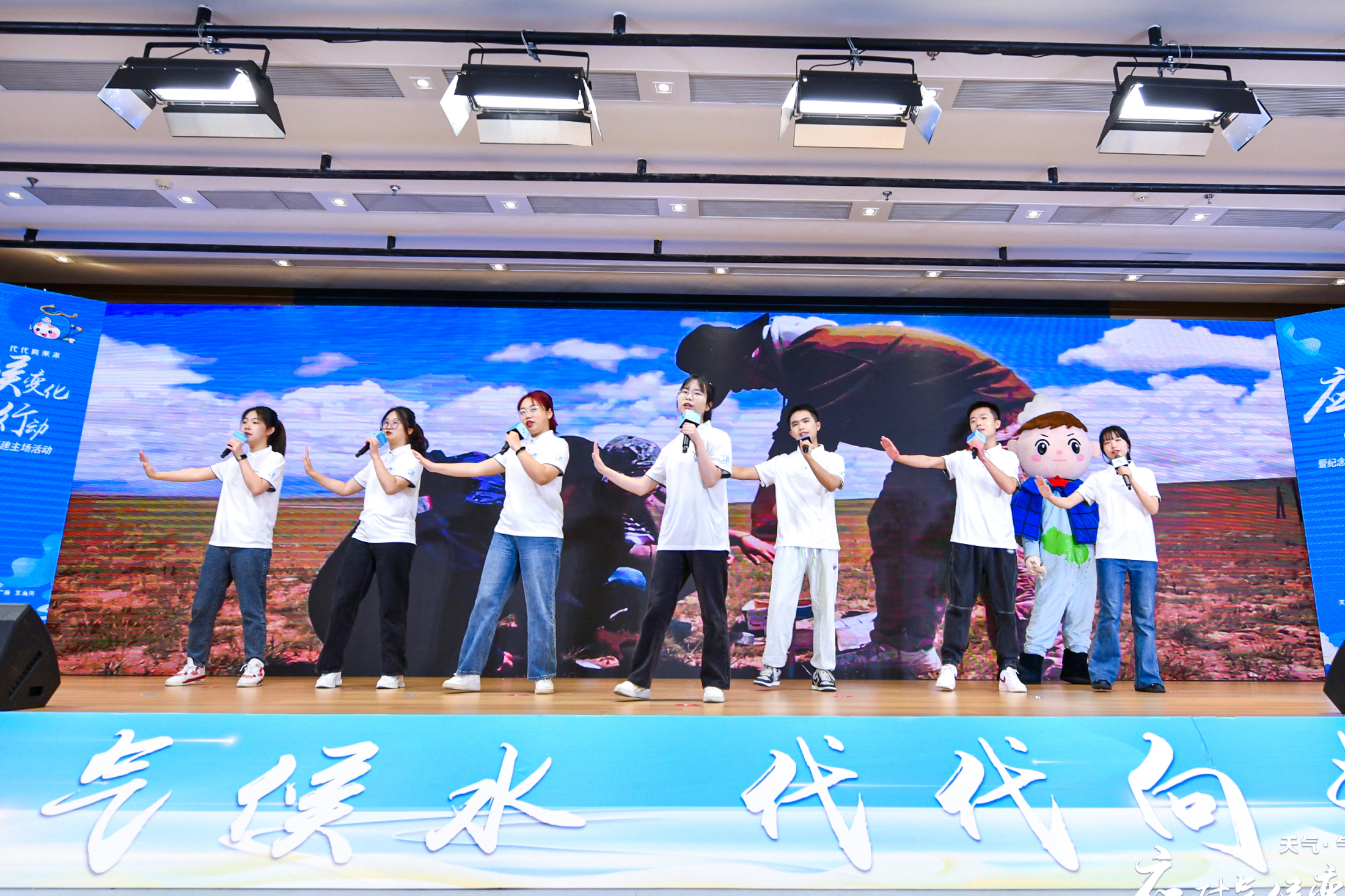 活动启动仪式上,福建师范大学青年志愿者演唱歌曲《一起向未来》,通过朝气蓬勃的表演呼吁关注气候变化。福建气象IP形象“福天天”与气象青年代表互动,通过多媒体形式演诵,倡议全社会共同参与,真正将绿色发展、美丽中国的愿景变为现实。现场还正式发布“应对气候变化志愿服务队”矩阵,由1个省级总队、10支各设区市、平潭分队组成。省级总队代表发出行动口号,展示气象志愿服务队伍风采,切实将把维护自然之美、生态之美、生命之美体现在行动上,落实到点滴中。