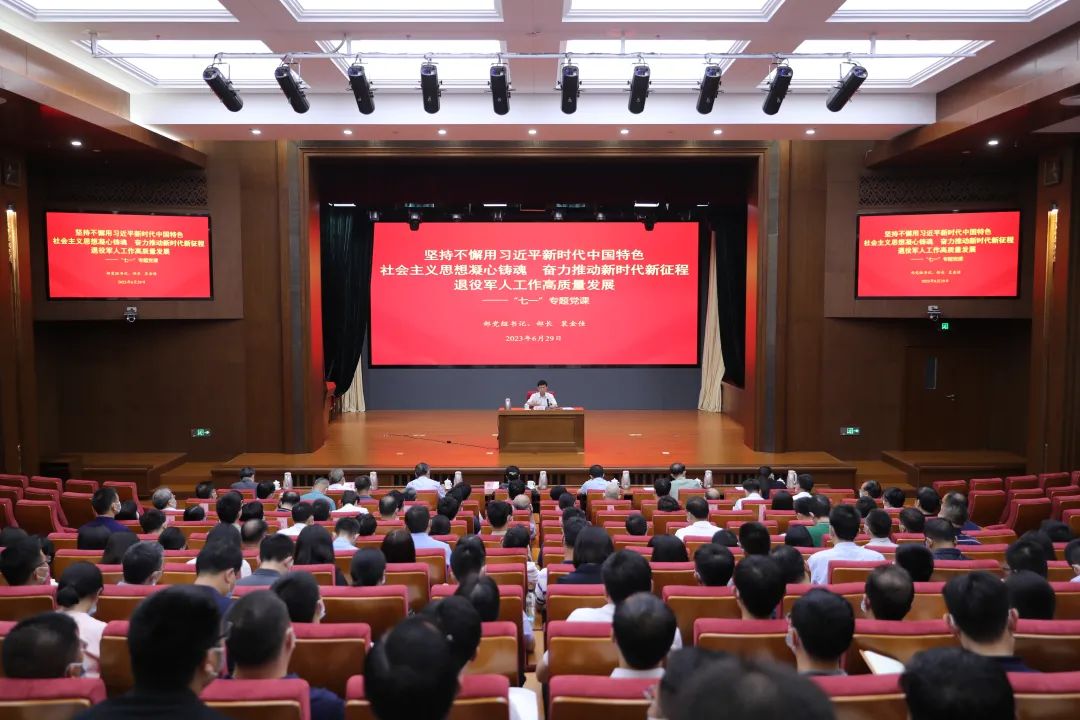 6月29日下午,退役军人事务部召开部党组理论学习中心组集体学习(扩大)会议,部党组书记、部长、部主题教育领导小组组长裴金佳围绕深入学习贯彻习近平新时代中国特色社会主义思想、习近平总书记关于主题教育系列重要讲话和重要指示批示精神,以“坚持不懈用习近平新时代中国特色社会主义思想凝心铸魂,奋力推动新时代新征程退役军人工作高质量发展”为题,讲授“七一”专题党课。中央第二十九指导组副组长周小莹到会指导,部领导钱锋、林国耀、常正国、杨友斌、马飞雄出席。