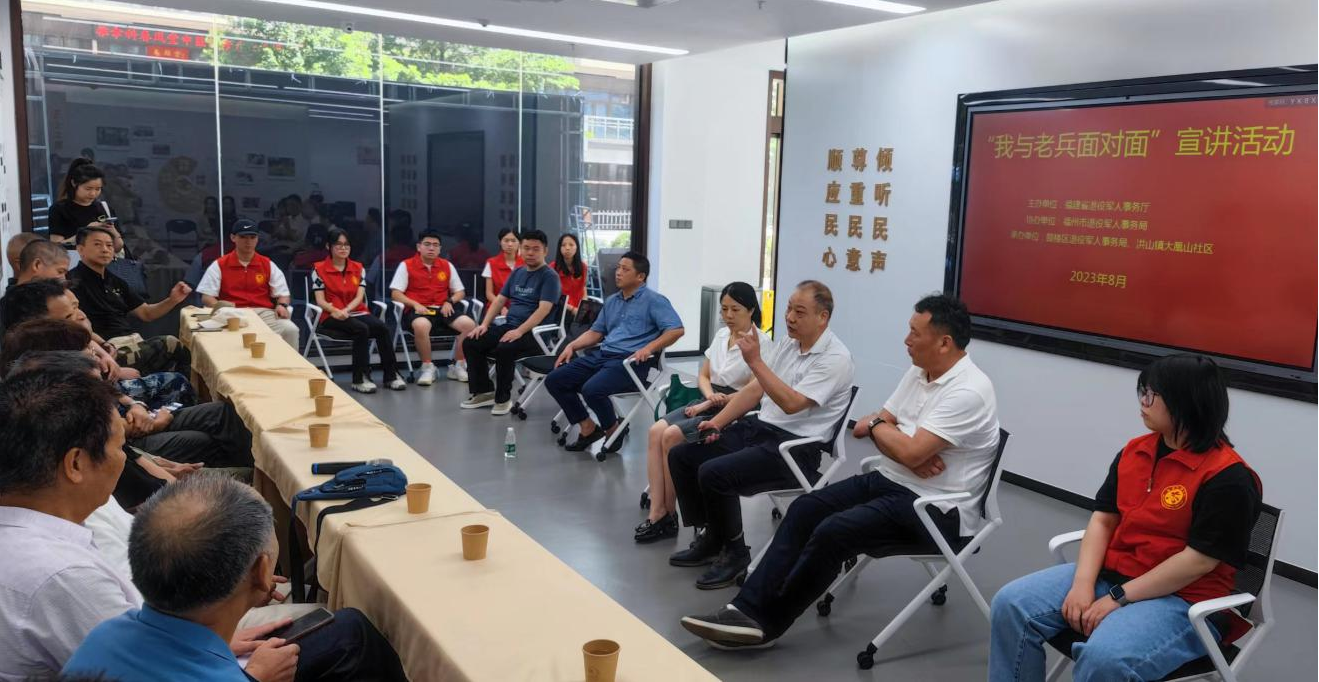为深入学习贯彻党的二十大精神和习近平总书记关于退役军人工作重要论述,持续推动主题教育在退役军人事务系统走深走实,推进退役军人政策普及和思想教育全员化、全覆盖,8月28日,省退役军人事务厅组织机关青年干部走进福州市鼓楼区大凰山社区,开展“我与老兵面对面”宣讲活动。
