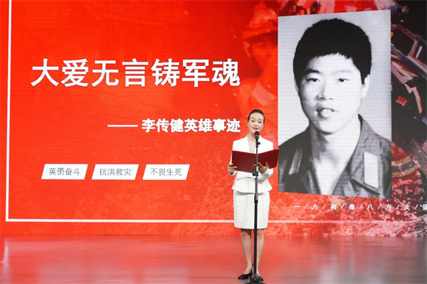《大爱无言铸军魂——李传健烈士》 (宣讲人:曹明) “‘人和蜡烛一样,只有把光和热奉献给人们才具有价值。’李传健在日记中写下这样一句话,同样用生命践行这样一句话。”曹明讲述烈士李传健全力救起落水群众,自己却因精疲力尽被河水卷走的感人故事。