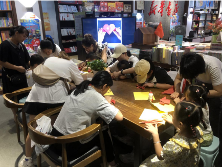 传承习俗 喜迎金秋满月 为传承民族文化,让小读者感受中国四大传统佳节之一中秋节的魅力,宁化分公司以猜灯谜的形式激发读者深入了解中华优秀传统文化的热情;平和分公司在当地宝善公园举办中秋文创集市;三明分公司利用微信群引流,开展玉兔折纸及爱心手环制作活动;闽清分公司带领小读者阅读绘本,并用彩纸折出月亮和兔子;永春分公司在与福建广电网络集团永春分公司合作建设的新华悦读驿站·鹏源店举办马赛克杯垫手作活动,“垫”亮中秋祝福;厦门分公司厦禾书城举办中秋庙会亲子活动,设置闽南特有的博饼民俗环节;漳州分公司设置博饼、投壶游戏,玩的是游戏,展现的却是亲人、朋友和乐团圆的温暖。此外,龙海、永定、莆田、沙县等分公司还开展制作灯笼活动。