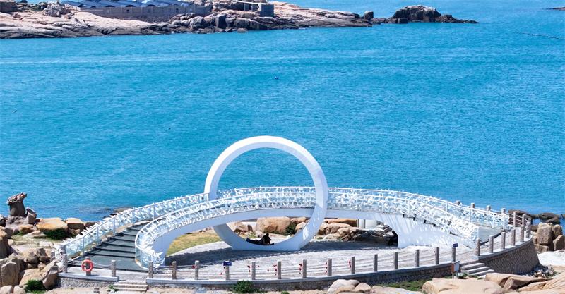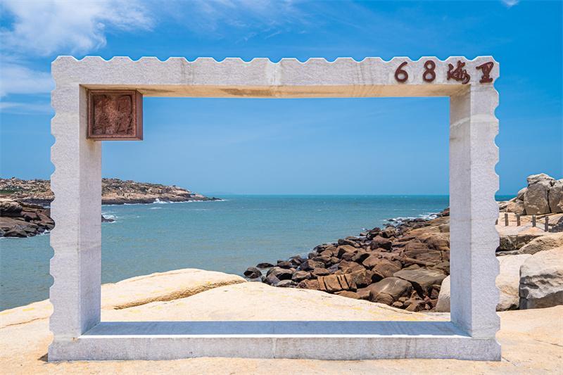 68海里景区位于平潭澳前镇,是祖国大陆距离台湾岛最近的地方,与台湾新竹相距仅68海里。“两岸同心窗”位于平潭68海里景区(国家4A级景区)的主岛——猴研岛上,以花岗岩砌成的一枚巨大的邮票造型,成为两岸地理与情感连接的象征。设计灵感来源于台湾诗人余光中《乡愁》中的诗句“乡愁是一枚小小的邮票”。 目前,“两岸同心窗”已成为岛上最具代表性的打卡点,象征着两岸之间一衣带水、隔海相望的亲情与思念。景区内还有以海峡为主题的雕塑群,如镌刻两岸家书的“墨水石柱”和眺望台湾的“望归石”,共同诉说着两岸故事。