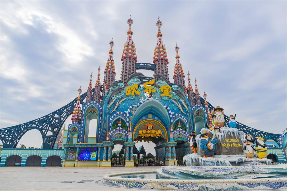 泉州欧乐堡海洋王国位于泉州湾滨海区域,紧邻玉沙湾、月亮湾,占地888亩,以“海洋文化”展示+体验为核心,涵盖五大板块:珍稀海洋极地动物展示、大型游乐设备、海洋科普研学、剧场表演、主题餐饮和住宿配套。以“海洋文化传承与创新”为核心,通过多维度融合实现文旅升级。在文化传承层面,依托“世遗泉州”历史底蕴,将海丝文化融入场景设计,同时,通过救助东亚江豚、设立海洋科普馆等举措,强化海洋生物保护与科普教育。