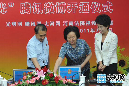 今天下午,随着河南法院张立勇大法官和河南省委宣传部巡视员赖谦进点击开通“豫法阳光”河南法院官方微博,河南法院正式进入“微”时代,网友只需要通过“微博”就可以监督河南法院。