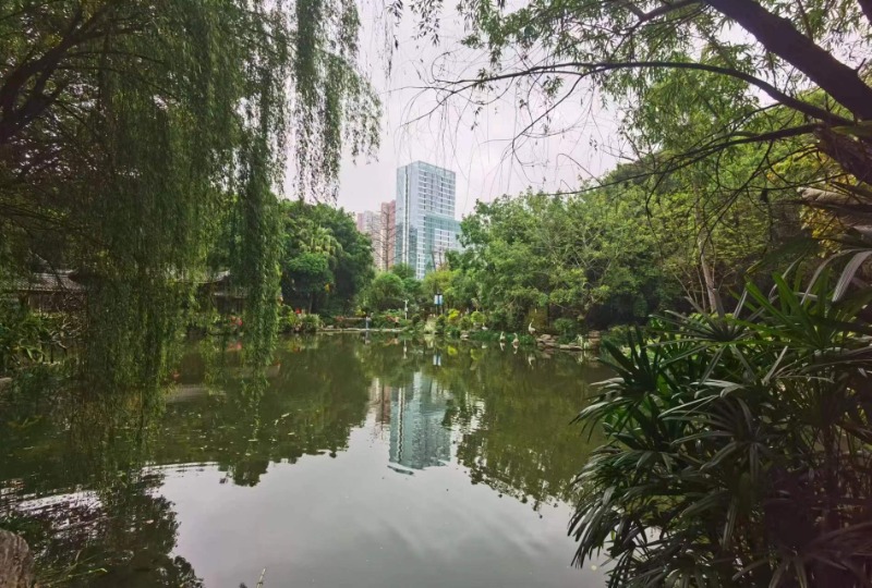 一向清澈的福州屏山公园人工湖突然黑臭 从屏山公园大门进入,往里不远就是绿树环绕的人工湖,一些游客正坐在沿湖而建的长廊里休息聊天。靠近湖边,只见湖水浑浊泛绿,隐隐有股恶臭,不甚明显。一根粗大的水管正在哗哗地向湖里冲水,大约是在中和变差的水质。通往另一个湖泊的小桥浅滩处,发黑的水质较为明显。 沿湖上行至龙井亭,这里的一口井是屏山公园人工湖的水源之一,井水每到一定水位,便会自动流进湖里,永远不会干涸或漫出。记者发现,井里的水漆黑如墨,带着一些油渍,湖面漂浮着变色的落叶,井口蚊虫飞舞。连接水井和人工湖的小溪里,石头有些发黑。