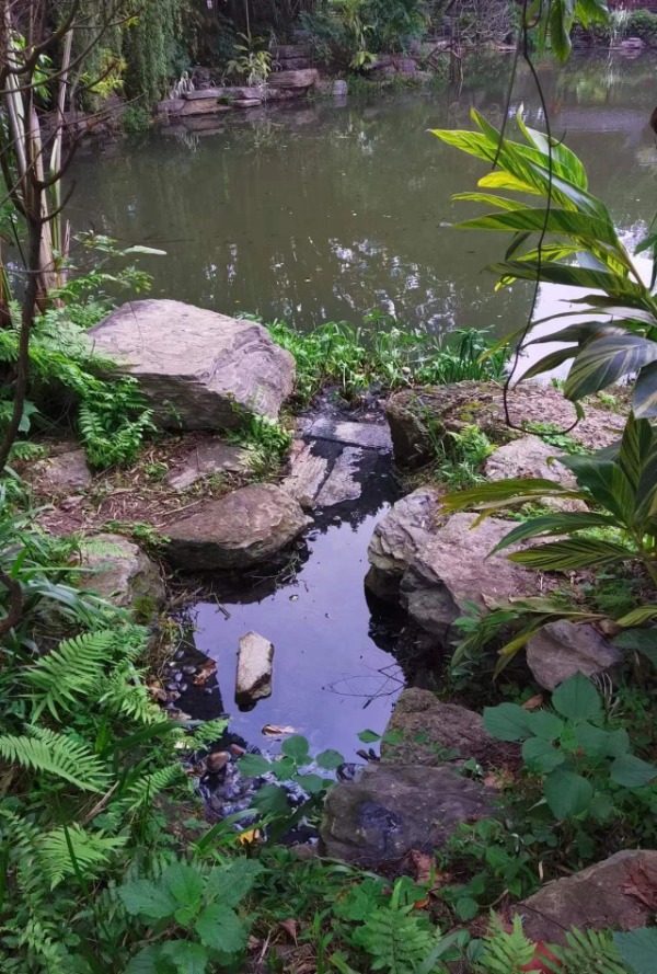 水井与人工湖衔接处,水体和石头发黑 “这里的水原本是非常清澈的,清明节的大雨之后就变成了这样。”现场,一位穿着红马甲的工作人员告诉记者,公园上方有居民区,怀疑是暴雨破坏了居民区的管道,维修时错将污水管接到了雨水管上,或者是污水管爆裂渗透,污染了井水所致。 屏山公园现场管理人员表示,湖水确是清明节后变黑的,原因正在排查。据介绍,当时井里流出的脏水泛着白色浮沫,湖里的锦鲤都死了几十条。公园管理中心立即报告了环保、建设、水务、街道等部门,并做了紧急处置,对湖体进行冲洗,逐步换水,并排查污水源头。上周,相关单位前来提取了水样,目前尚未告知结果。 当日,记者就此事联系了福州市生态环境局。17日,福州市建设局相关负责人联系记者称,该局接到市生态环境局的反映,已让属地工作人员到现场查看,鼓楼区园林中心作为管理单位正在排查原因。18日,福州市生态环境局相关负责人林先生答复记者称,鼓楼区生态环境局多次到现场排查,福州市生态环境局也对接了建设及园林部门,明确是鼓楼区园林中心的管辖范围,该局将积极配合。 鼓楼区园林中心工作人员表示,该中心已联合环卫、建设部门,正在全力查找源头、治理问题。通过一段时间的紧急处置,污染情况已有所改善。不过,近两日再次下雨后,又有污水渗出,该中心正在沿着井下一处污水管查找源头,希望能尽快恢复水质。